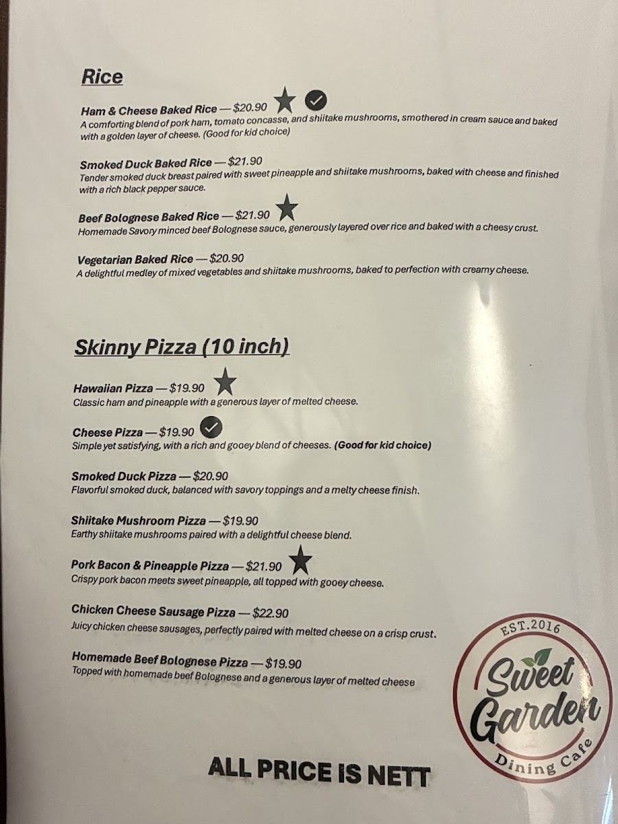 At Sweet Garden Dining Cafe, you'll discover a menu filled with flavorful dishes that cater to all tastes. Whether you're in the mood for a hearty breakfast, a light lunch, or a cozy dinner, this charming spot has something for everyone. The cafe's vibrant yet relaxed atmosphere makes it the perfect place to unwind while enjoying delicious meals made with fresh, quality ingredients. From wholesome salads to indulgent desserts, every item is thoughtfully crafted to satisfy both your cravings and your appetite. Each dish is designed to bring out bold flavors while offering comforting familiarity, making Sweet Garden Dining Cafe a must-visit for anyone in the area. Whether you're here for a quick bite or a leisurely meal with friends, you'll find a delightful selection that promises to leave you coming back for more.
